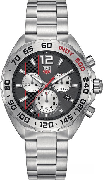 Часы TAG Heuer Formula 1 Quartz 42 mm представлены в корпусе из нержавеющей стали размером 42 мм водонепроницаемостью 200 метров. Внутри корпуса установлен кварцевый механизм с функцией хронографа. На сером циферблате отображаются часы, минуты, секунды, дата, тахиметр, накопители хронографа. Часы поставляются на браслете из нержавеющей стали.