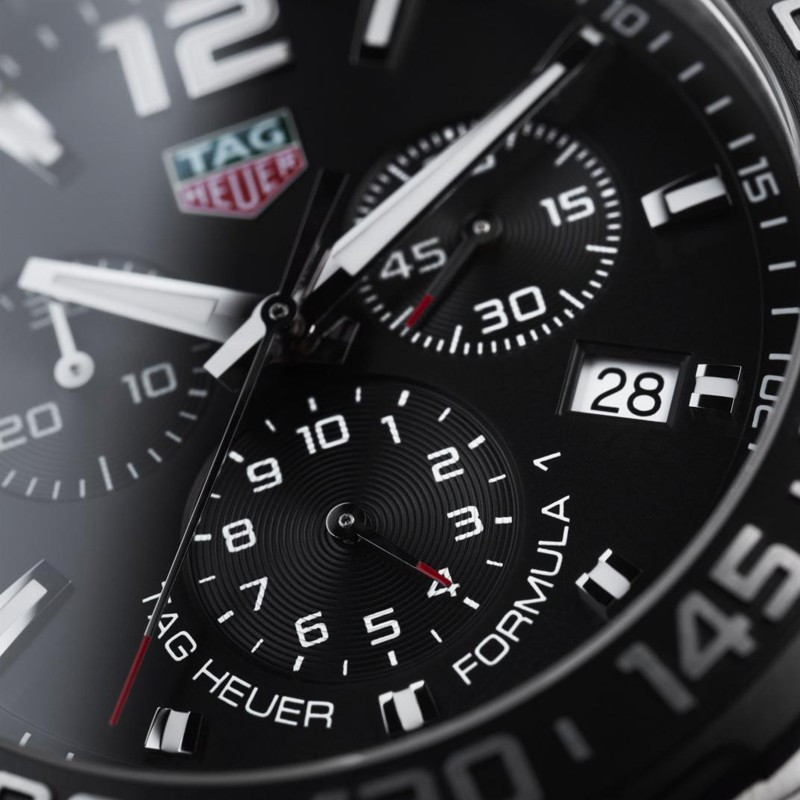 Часы TAG Heuer Formula 1 Quartz 43 mm представлены в корпусе из нержавеющей стали размером 43 мм водонепроницаемостью 200 метров. Внутри корпуса установлен кварцевый механизм с функцией хронографа. На черном циферблате отображаются часы, минуты, секунды, дата, тахиметр, накопители хронографа. Часы поставляются на браслете из нержавеющей стали.