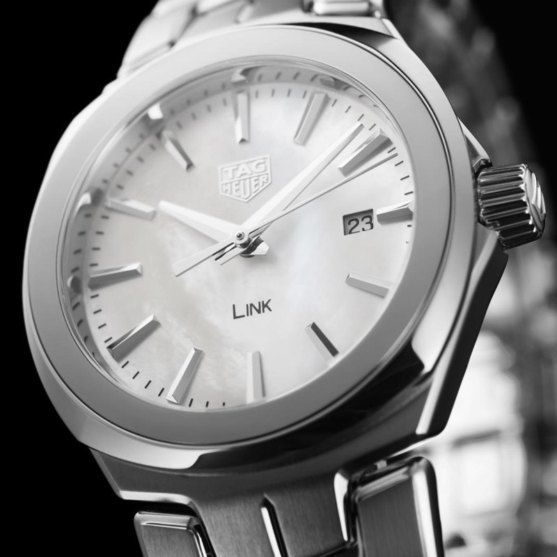 Часы TAG Heuer Link Quartz 32 mm представлены в корпусе из нержавеющей стали размером 32 мм водонепроницаемостью 100 метров. Внутри корпуса установлен кварцевый механизм. На белом жемчужном циферблате отображаются часы, минуты, секунды, дата. Часы поставляются на браслете из нержавеющей стали.