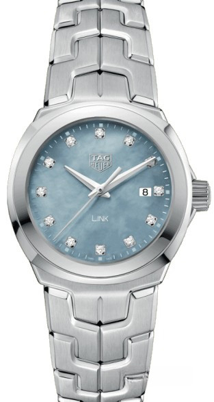Часы TAG Heuer Link Quartz 32 mm представлены в корпусе из нержавеющей стали размером 32 мм водонепроницаемостью 100 метров. Внутри корпуса установлен кварцевый механизм. На сером жемчужном циферблате с 12-ю белыми бриллиантами отображаются часы, минуты, секунды, дата. Часы поставляются на браслете из нержавеющей стали.