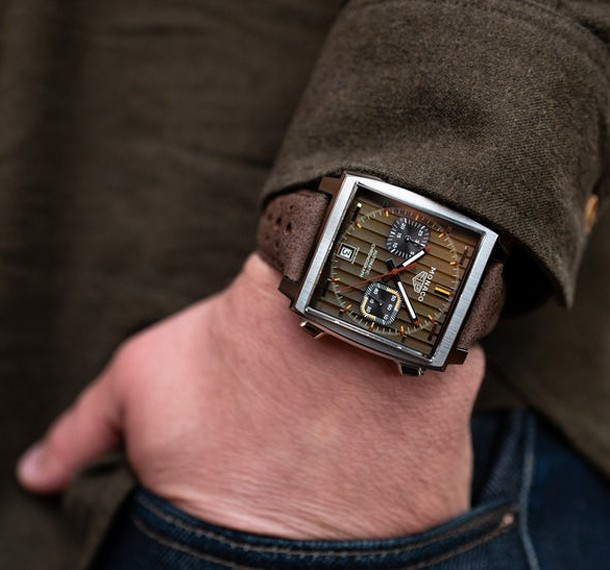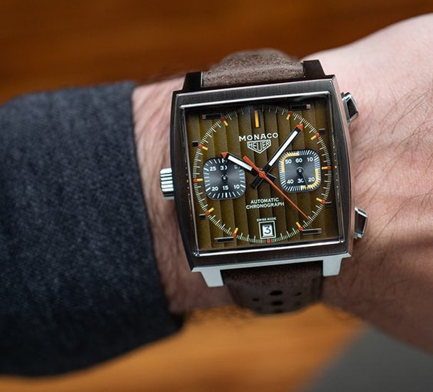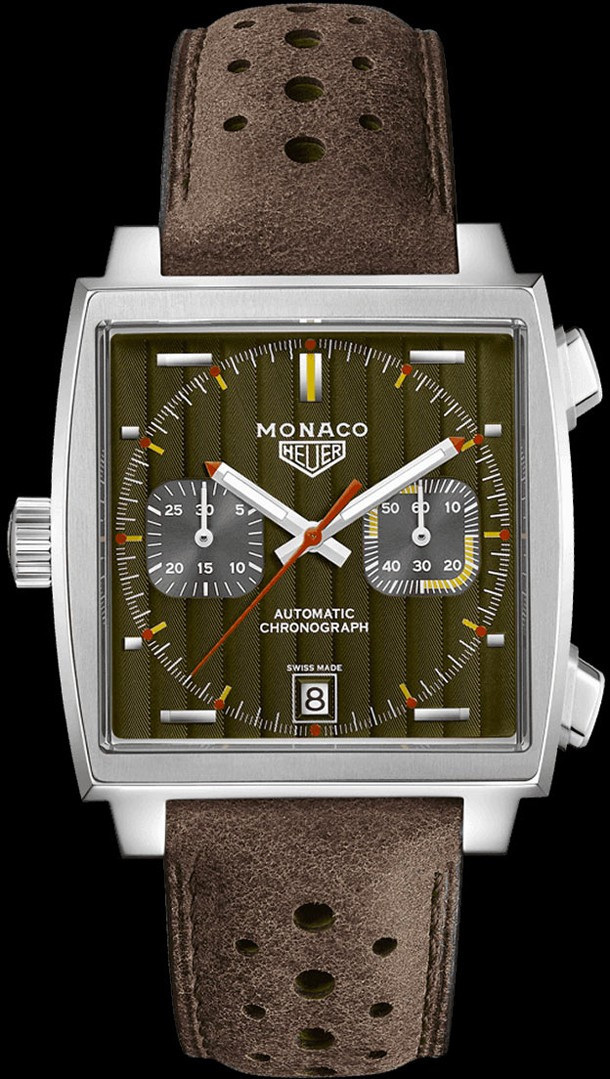 Эти часы посвящены полувековому юбилею коллекции TAG Heuer Monaco. Они вышли ограниченной серией из 169 экземпляров вместе с 4 другими эксклюзивными моделями. Часы в стиле 1970-х годов имеют зеленый циферблат Côtes de Genève с акцентами коричневого и янтарного цветов. Два счетчика с покрытием «черное золото» находятся в положениях «3 и 9 часов». Часы носятся на коричневом кожаном ремешке. На задней крышке выгравирован логотип «Monaco Heuer». Гравировкой нанесены также надписи «Special Edition 1969-1979» и «One of 169». Под задней крышкой работает легендарный Caliber 11, объединяющий в себе стильность и высокие рабочие характеристики.