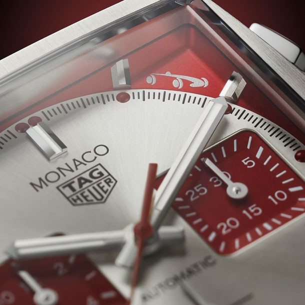 TAG Heuer Monaco Grand Prix de Monaco Historique Limited Edition - современное воплощение и дань современному событию, которое прославляет историю гонок. Красно-белый мотив придает часам сильный мужской вид. Циферблат имеет эффект лучистого гильоше, и контраст красных округленных квадратных субциферблатов с белым на основной поверхности циферблата обеспечивает отличную читаемость. Ограниченная серия Monaco поражает своим заводским механизмом Калибр Heuer 02, видимым через сапфировую заднюю крышку, украшенную логотипом Grand Prix de Monaco Historique. Калибр Heuer 02 с 168 отдельными компонентами, колонным колесом колонки и вертикальной муфтой обеспечивает 80-часовой запас хода. Эти особенные часы имеют как кнопки хронографа, так и заводную головку с правой стороны корпуса и оснащены перфорированным кожаным гоночным ремешком. На задней крышке каждого изделия выгравирована надпись «Один из 1000».