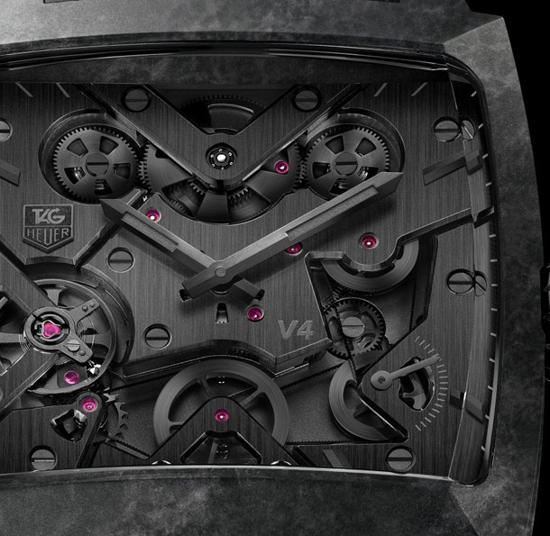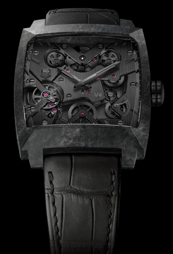 Модель TAG Heuer Monaco V4 Phantom (Референс WAW2091.FC6369) оснащена полностью черным корпусом размером 41 х 41 мм из углеродистого композита. Новинка присоединяется к предыдущим моделям V4 из платины, розового золота и титана. Тот же механизм - ременная передача, линейный ротор, хотя некоторые эстетические свойства заметно отличаются. TAG называет корпус из углерода СМС композитной углеродной матрицей и некоторые мосты (точнее 7) изготовлены из этого же материала. Особенно гладкая и изысканная отделка является результатом производственного процесса, в котором углеродные волокна ориентируются в форме в одном направлении, а затем подвергаются обработке. Остальные детали - стрелки, циферблат и другие, - обработаны титан-карбидным покрытием для завершения "фантомного" вида. Директор по развитию и разработке TAG Heuer сообщает, что первый выпуск модели Monaco V4 Phantom будет в количестве 50 экземпляров, по цене 45 000 швейцарских франков за экземпляр.