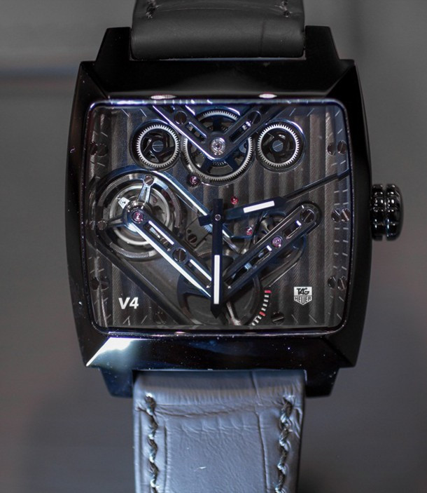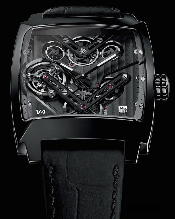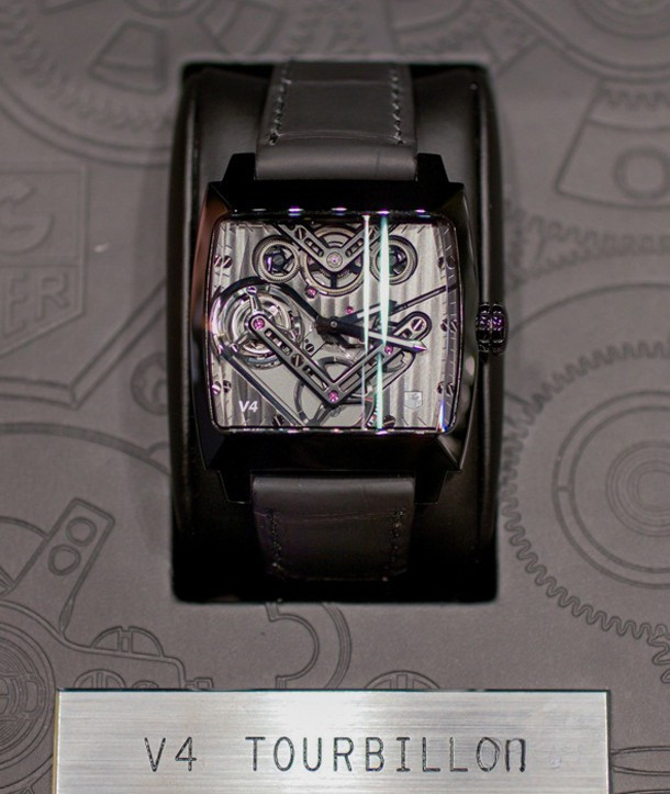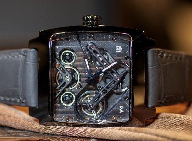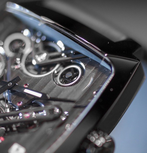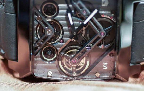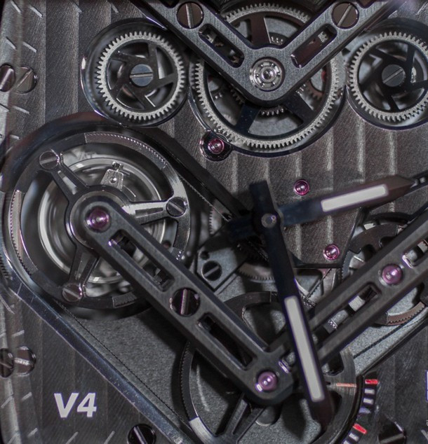 Революционный механизм с турбийоном в движение приводится ремнями. По словам инженеров компании, использование ременной трансмиссии позволило добиться беспрецедентной плавности вращения каретки турбийона. Помимо того, их использование делает часы гораздо более устойчивыми к ударам. Толщина самых тонких ремешков составляет 0,07 мм, что соответствует толщине человеческого волоса. Из-за турбийона циферблат стал сложней и динамичней. Главное новшество — это второй V-образный мост, на котором закреплена каретка турбийона и колеса трансмиссии. Инфраструктурные нововведения сказались на дизайне часов положительно, поклонники изощренной механики, дорогих спортивных автомобилей и форсированных двигателей должны быть рады. Энергия, необходимая для работы механизма, запасается в четырех заводных барабанах и ее хватает на 40 часов работы. Завод осуществляется в автоматическом режиме, причем здесь нет обычного сектора автоподзавода, который вращается вокруг своей оси — вместо него используется прямоугольный вольфрамовый грузик, который по металлическим рельсам перемещается вверх-вниз. Корпус сделан из титана с черным глянцевым покрытием. Его размеры: 41 мм на 41 мм. Всего будет выпущено 50 таких часов.