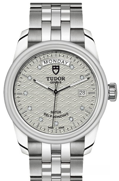 Часы Tudor Glamour Date Day представлены в корпусе из нержавеющей стали размером 39 мм. Внутри корпуса установлен автоматический механизм, Калибр 2834, обладающий запасом хода 38 часов. На серебристом гильошированном циферблате с 10-ю белыми бриллиантами отображаются часы, минуты, секунды, дата и день недели. Часы поставляются на браслете из нержавеющей стали. Водонепроницаемость корпуса составляет 100 метров.