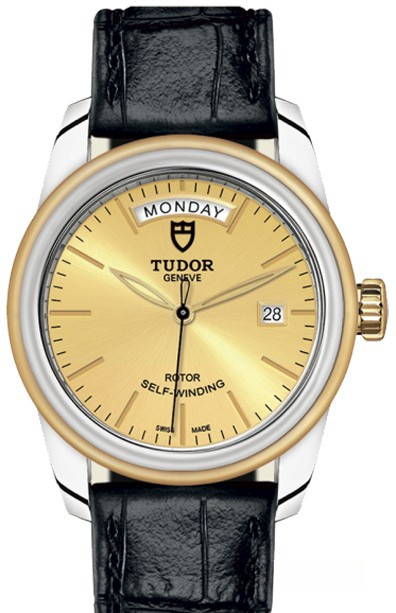 Часы Tudor Glamour Date Day представлены в корпусе из нержавеющей стали и желтого золота 18к размером 39 мм. Внутри корпуса установлен автоматический механизм, Калибр 2834, обладающий запасом хода 38 часов. На золотистом циферблате отображаются часы, минуты, секунды, дата и день недели. Часы поставляются на ремешке из кожи аллигатора с вставкой из нержавеющей стали. Водонепроницаемость корпуса составляет 100 метров.
