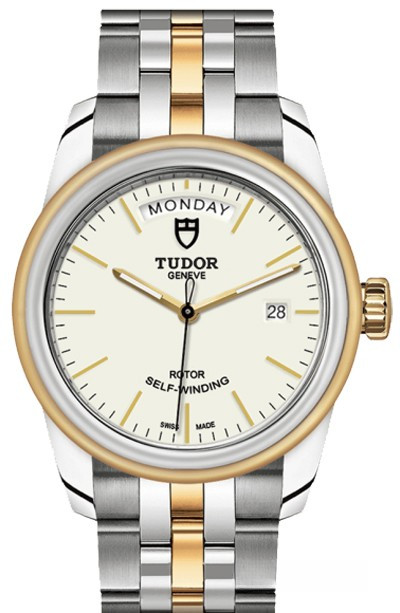 Часы Tudor Glamour Date Day представлены в корпусе из нержавеющей стали и желтого золота 18к размером 39 мм. Внутри корпуса установлен автоматический механизм, Калибр 2834, обладающий запасом хода 38 часов. На белом циферблате отображаются часы, минуты, секунды, дата и день недели. Часы поставляются на браслете из нержавеющей стали и желтого золота 18к. Водонепроницаемость корпуса составляет 100 метров.