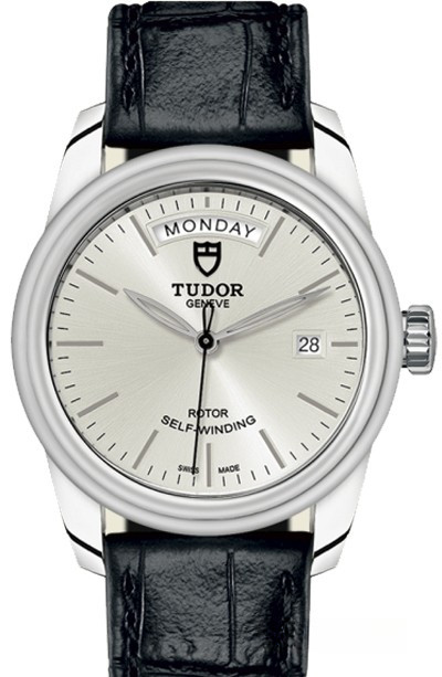Часы Tudor Glamour Date Day представлены в корпусе из нержавеющей стали размером 39 мм. Внутри корпуса установлен автоматический механизм, Калибр 2834, обладающий запасом хода 38 часов. На серебристом циферблате отображаются часы, минуты, секунды, дата и день недели. Часы поставляются на ремешке из кожи аллигатора с вставкой из нержавеющей стали. Водонепроницаемость корпуса составляет 100 метров.