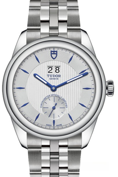 Часы Tudor Glamour Double Date представлены в корпусе из нержавеющей стали размером 42 мм. Внутри корпуса установлен автоматический механизм, Калибр MT5641, обладающий запасом хода 70 часов. На серебристом гильошированном циферблате отображаются часы, минуты, секунды и дата. Часы поставляются на браслете из нержавеющей стали. Водонепроницаемость корпуса составляет 100 метров. Часы имеют официальный сертификат хронометра COSC.