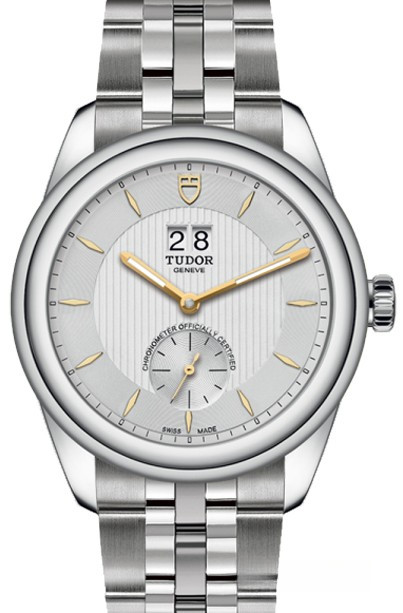 Часы Tudor Glamour Double Date представлены в корпусе из нержавеющей стали размером 42 мм. Внутри корпуса установлен автоматический механизм, Калибр MT5641, обладающий запасом хода 70 часов. На серебристом гильошированном циферблате отображаются часы, минуты, секунды и дата. Часы поставляются на браслете из нержавеющей стали. Водонепроницаемость корпуса составляет 100 метров. Часы имеют официальный сертификат хронометра COSC.