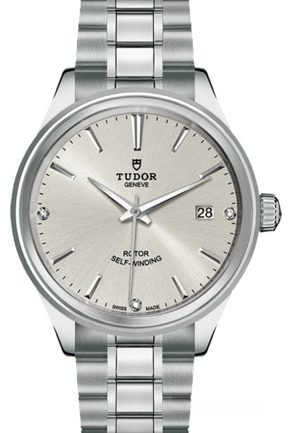 Часы Tudor Classic Style 38 выпущены в корпусе из нержавеющей стали размером 38 мм и водонепроницаемостью 100 м. Внутри корпуса установлен автоматический Калибр 2824 с запасом хода 38 часов. На серебристом циферблате с 3-мя белыми бриллиантами отображаются часы, минуты, секунды, дата. Часы комплектуются браслетом из нержавеющей стали.