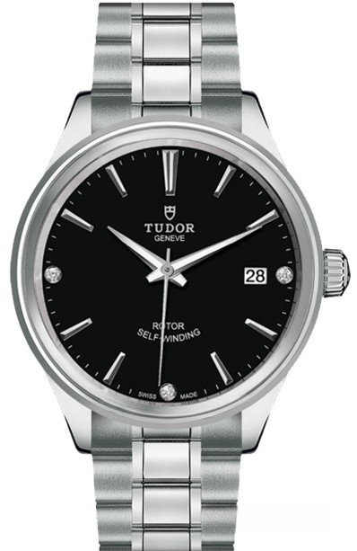 Часы Tudor Classic Style 38 выпущены в корпусе из нержавеющей стали размером 38 мм и водонепроницаемостью 100 м. Внутри корпуса установлен автоматический Калибр 2824 с запасом хода 38 часов. На черном циферблате с 3-мя белыми бриллиантами отображаются часы, минуты, секунды, дата. Часы комплектуются браслетом из нержавеющей стали.