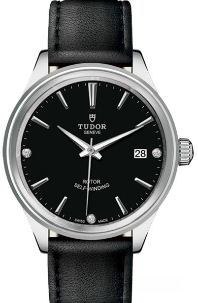 Часы Tudor Classic Style 38 выпущены в корпусе из нержавеющей стали размером 38 мм и водонепроницаемостью 100 м. Внутри корпуса установлен автоматический Калибр 2824 с запасом хода 38 часов. На черном циферблате с 3-мя белыми бриллиантами отображаются часы, минуты, секунды, дата. Часы комплектуются кожаным ремешком с вставкой из нержавеющей стали.