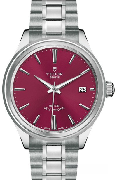 Часы Tudor Classic Style 38 выпущены в корпусе из нержавеющей стали размером 38 мм и водонепроницаемостью 100 м. Внутри корпуса установлен автоматический Калибр 2824 с запасом хода 38 часов. На бордовом циферблате отображаются часы, минуты, секунды, дата. Часы комплектуются браслетом из нержавеющей стали.