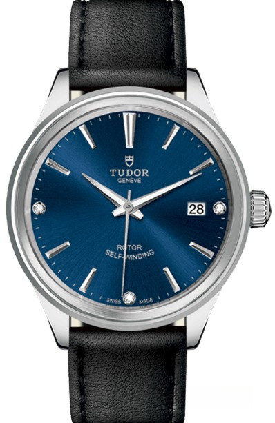 Часы Tudor Classic Style 38 выпущены в корпусе из нержавеющей стали размером 38 мм и водонепроницаемостью 100 м. Внутри корпуса установлен автоматический Калибр 2824 с запасом хода 38 часов. На синем циферблате с 3-мя белыми бриллиантами отображаются часы, минуты, секунды, дата. Часы комплектуются кожаным ремешком с вставкой из нержавеющей стали.