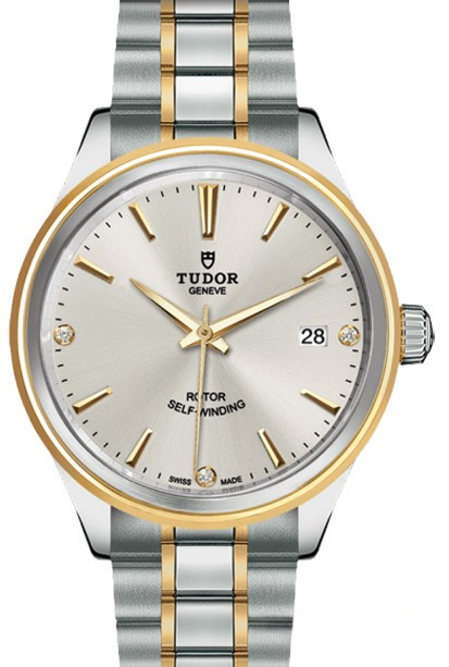 Часы Tudor Classic Style 38 выпущены в корпусе из нержавеющей стали и желтого золота 18к, размером 38 мм и водонепроницаемостью 100 м. Внутри корпуса установлен автоматический Калибр 2824 с запасом хода 38 часов. На серебристом циферблате с 3-мя белыми бриллиантами отображаются часы, минуты, секунды, дата. Часы комплектуются браслетом из нержавеющей стали и желтого золота 18к.
