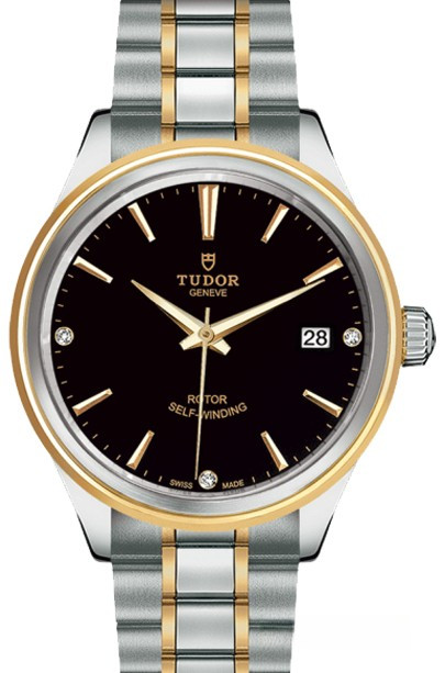 Часы Tudor Classic Style 38 выпущены в корпусе из нержавеющей стали и желтого золота 18к, размером 38 мм и водонепроницаемостью 100 м. Внутри корпуса установлен автоматический Калибр 2824 с запасом хода 38 часов. На черном циферблате с 3-мя белыми бриллиантами отображаются часы, минуты, секунды, дата. Часы комплектуются браслетом из нержавеющей стали и желтого золота 18к.