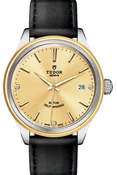 Часы Tudor Classic Style 38 выпущены в корпусе из нержавеющей стали и желтого золота 18к, размером 38 мм и водонепроницаемостью 100 м. Внутри корпуса установлен автоматический Калибр 2824 с запасом хода 38 часов. На золотистом циферблате с 3-мя белыми бриллиантами отображаются часы, минуты, секунды, дата. Часы комплектуются кожаным ремешком с вставкой из нержавеющей стали.