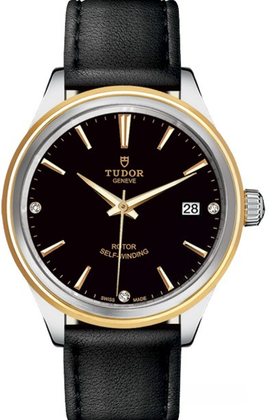 Часы Tudor Classic Style 38 выпущены в корпусе из нержавеющей стали и желтого золота 18к, размером 38 мм и водонепроницаемостью 100 м. Внутри корпуса установлен автоматический Калибр 2824 с запасом хода 38 часов. На черном циферблате с 3-мя белыми бриллиантами отображаются часы, минуты, секунды, дата. Часы комплектуются кожаным ремешком с вставкой из нержавеющей стали.