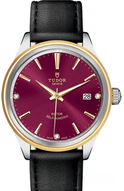 Часы Tudor Classic Style 38 выпущены в корпусе из нержавеющей стали и желтого золота 18к, размером 38 мм и водонепроницаемостью 100 м. Внутри корпуса установлен автоматический Калибр 2824 с запасом хода 38 часов. На бордовом циферблате с 3-мя белыми бриллиантами отображаются часы, минуты, секунды, дата. Часы комплектуются кожаным ремешком с вставкой из нержавеющей стали.