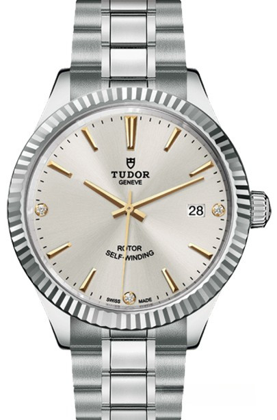 Часы Tudor Classic Style 38 выпущены в корпусе из нержавеющей стали размером 38 мм и водонепроницаемостью 100 м. Внутри корпуса установлен автоматический Калибр 2824 с запасом хода 38 часов. На серебристом циферблате с 3-мя белыми бриллиантами отображаются часы, минуты, секунды, дата. Часы комплектуются браслетом из нержавеющей стали.