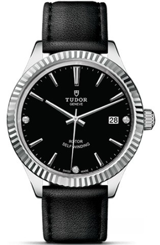 Часы Tudor Classic Style 38 выпущены в корпусе из нержавеющей стали, размером 38 мм и водонепроницаемостью 100 м. Внутри корпуса установлен автоматический Калибр 2824 с запасом хода 38 часов. На черном циферблате с 3-мя белыми бриллиантами отображаются часы, минуты, секунды, дата. Часы комплектуются кожаным ремешком с вставкой из нержавеющей стали.
