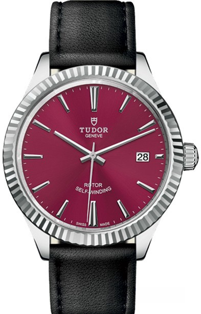 Часы Tudor Classic Style 38 выпущены в корпусе из нержавеющей стали размером 38 мм и водонепроницаемостью 100 м. Внутри корпуса установлен автоматический Калибр 2824 с запасом хода 38 часов. На бордовом циферблате отображаются часы, минуты, секунды, дата. Часы комплектуются кожаным ремешком с вставкой из нержавеющей стали.