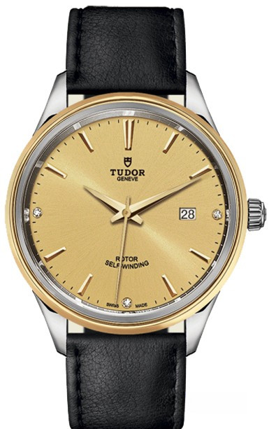 Часы Tudor Classic Style 41 выпущены в корпусе из нержавеющей стали и желтого золота 18к, размером 41 мм и водонепроницаемостью 100 м. Внутри корпуса установлен автоматический Калибр 2824 с запасом хода 38 часов. На золотистом циферблате с 3-мя белыми бриллиантами отображаются часы, минуты, секунды, дата. Часы комплектуются кожаным ремешком с втсавкой из нержавеющей стали.