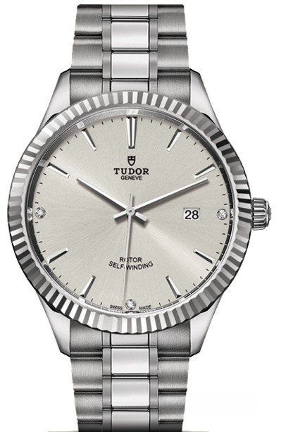 Часы Tudor Classic Style 41 выпущены в корпусе из нержавеющей стали размером 41 мм и водонепроницаемостью 100 м. Внутри корпуса установлен автоматический Калибр 2824 с запасом хода 38 часов. На серебристом циферблате с 3-мя белыми бриллиантами отображаются часы, минуты, секунды, дата. Часы комплектуются браслетом из нержавеющей стали.