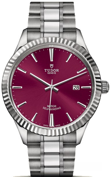 Часы Tudor Classic Style 41 выпущены в корпусе из нержавеющей стали размером 41 мм и водонепроницаемостью 100 м. Внутри корпуса установлен автоматический Калибр 2824 с запасом хода 38 часов. На бордовом циферблате отображаются часы, минуты, секунды, дата. Часы комплектуются браслетом из нержавеющей стали.