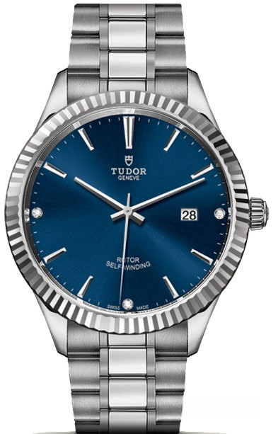 Часы Tudor Classic Style 41 выпущены в корпусе из нержавеющей стали размером 41 мм и водонепроницаемостью 100 м. Внутри корпуса установлен автоматический Калибр 2824 с запасом хода 38 часов. На синем циферблате с 3-мя белыми бриллиантами отображаются часы, минуты, секунды, дата. Часы комплектуются браслетом из нержавеющей стали.