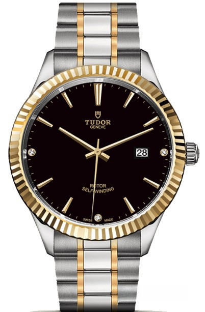 Часы Tudor Classic Style 41 выпущены в корпусе из нержавеющей стали и желтого золота 18к, размером 41 мм и водонепроницаемостью 100 м. Внутри корпуса установлен автоматический Калибр 2824 с запасом хода 38 часов. На черном циферблате с 3-мя белыми бриллиантами отображаются часы, минуты, секунды, дата. Часы комплектуются браслетом из нержавеющей стали и желтого золота 18к.