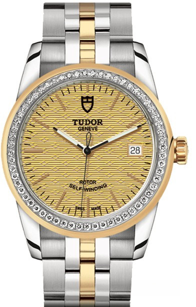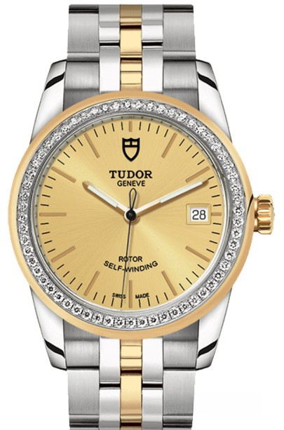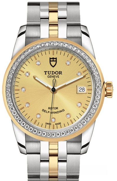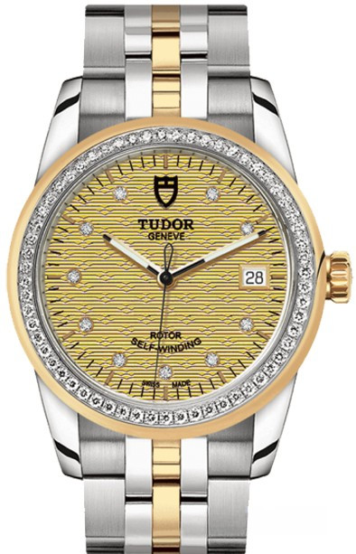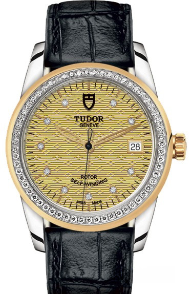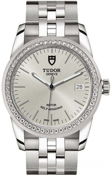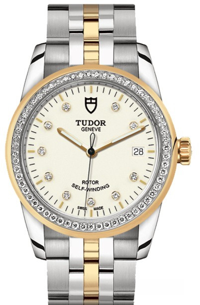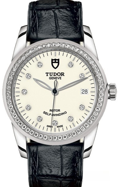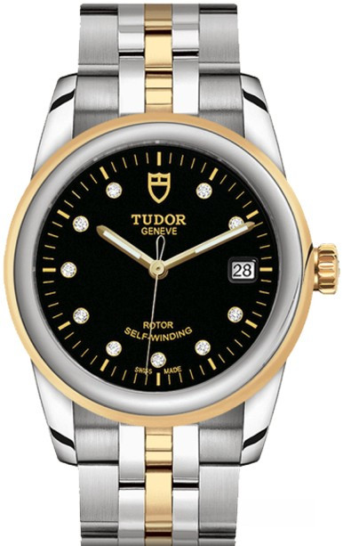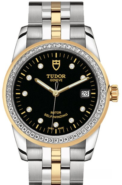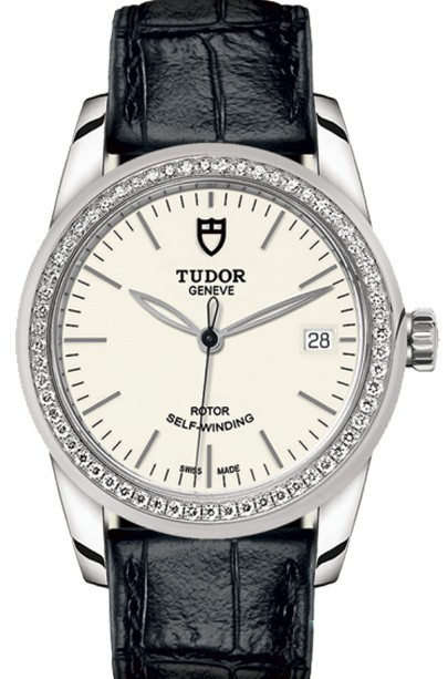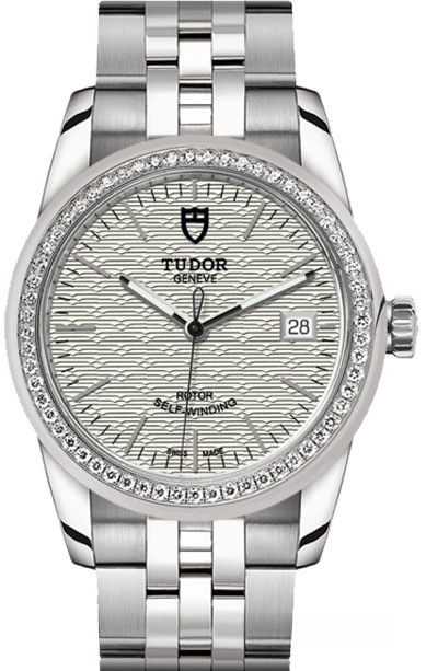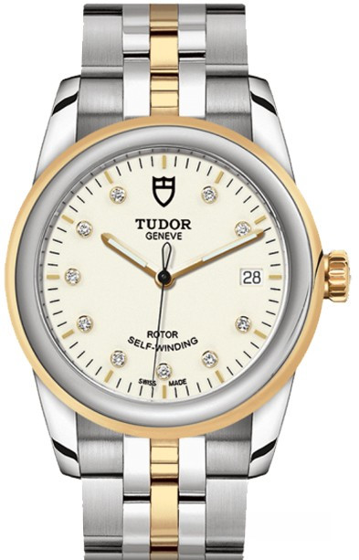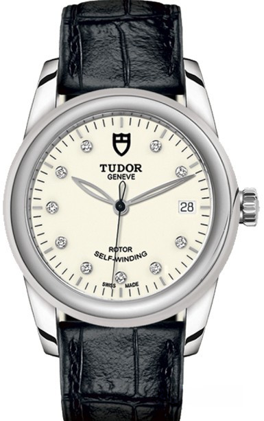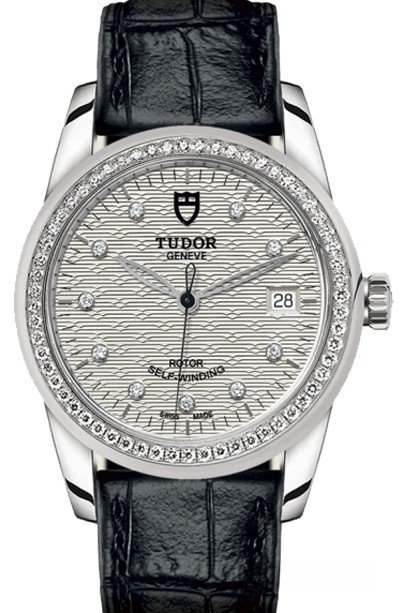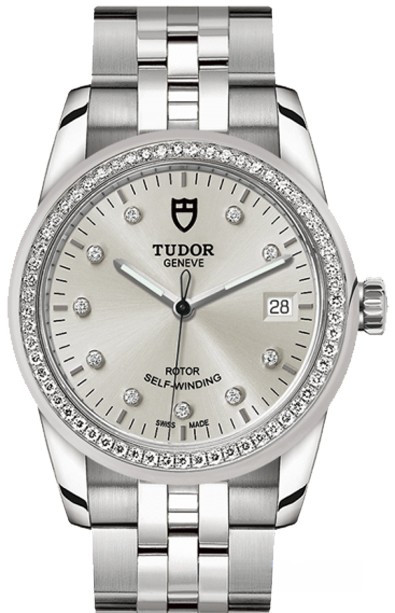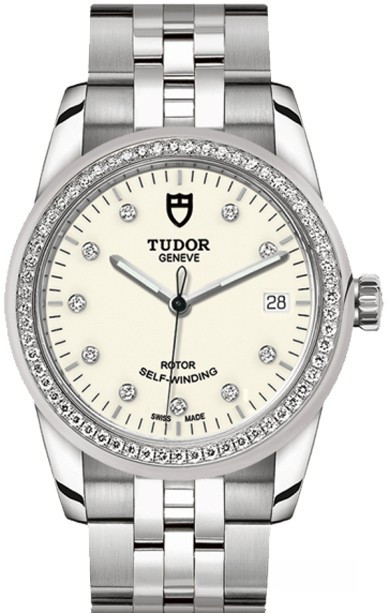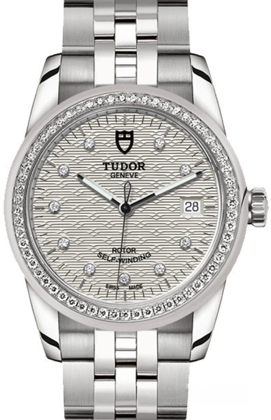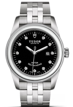 Часы Tudor Glamour Date 31 mm выпущены в корпусе из нержавеющей стали, размером 31 мм и водонепроницаемостью 100 м. Внутри корпуса установлен автоматический Калибр 2671 с запасом хода 38 часов. На черном циферблате с 10-ю белыми бриллиантами отображаются часы, минуты, секунды, дата. Часы комплектуются браслетом из нержавеющей стали.
