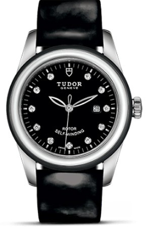 Часы Tudor Glamour Date 31 mm выпущены в корпусе из нержавеющей стали, размером 31 мм и водонепроницаемостью 100 м. Внутри корпуса установлен автоматический Калибр 2671 с запасом хода 38 часов. На черном циферблате с 11-ю белыми бриллиантами отображаются часы, минуты, секунды, дата. Часы комплектуются кожаным ремешком с вставкой из нержавеющей стали.