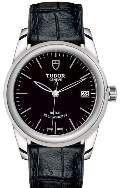 Часы Tudor Glamour Date 36 mm выпущены в корпусе из нержавеющей стали размером 36 мм и водонепроницаемостью 100 м. Внутри корпуса установлен автоматический Калибр 2824 с запасом хода 38 часов. На черном циферблате отображаются часы, минуты, секунды, дата. Часы поставляются на ремешке из кожи аллигатора с вставкой из нержавеющей стали.