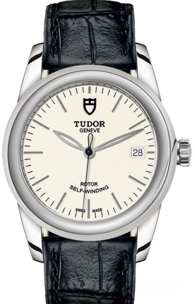 Часы Tudor Glamour Date 36 mm выпущены в корпусе из нержавеющей стали размером 36 мм и водонепроницаемостью 100 м. Внутри корпуса установлен автоматический Калибр 2824 с запасом хода 38 часов. На белом циферблате отображаются часы, минуты, секунды, дата. Часы поставляются на ремешке из кожи аллигатора с вставкой из нержавеющей стали.