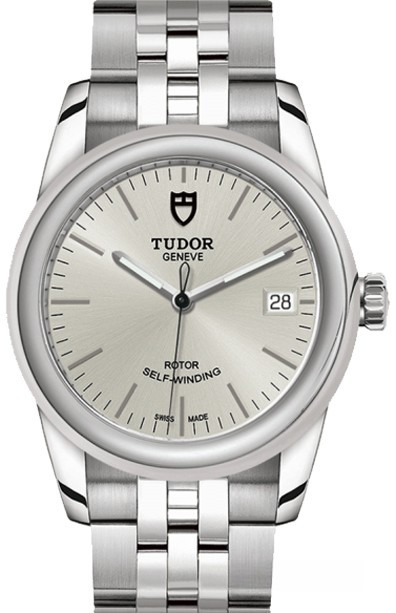 Часы Tudor Glamour Date 36 mm выпущены в корпусе из нержавеющей стали размером 36 мм и водонепроницаемостью 100 м. Внутри корпуса установлен автоматический Калибр 2824 с запасом хода 38 часов. На серебристом циферблате отображаются часы, минуты, секунды, дата. Часы поставляются на браслете из нержавеющей стали.