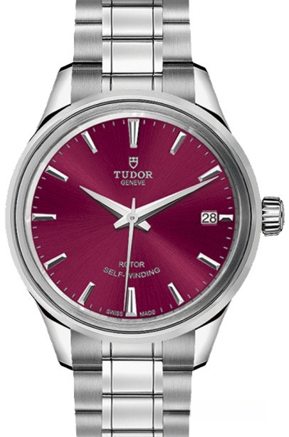 Часы Tudor Classic Style 34 выпущены в корпусе из нержавеющей стали размером 34 мм и водонепроницаемостью 100 м. Внутри корпуса установлен автоматический Калибр 2824 с запасом хода 38 часов. На бордовом циферблате отображаются часы, минуты, секунды, дата. Часы комплектуются браслетом из нержавеющей стали.