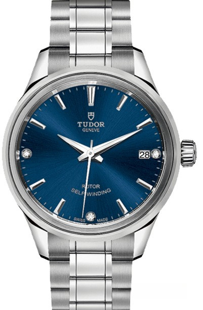 Часы Tudor Classic Style 34 выпущены в корпусе из нержавеющей стали размером 34 мм и водонепроницаемостью 100 м. Внутри корпуса установлен автоматический Калибр 2824 с запасом хода 38 часов. На синем циферблате с 3-мя белыми бриллиантами отображаются часы, минуты, секунды, дата. Часы комплектуются браслетом из нержавеющей стали.