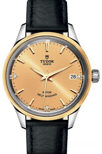 Часы Tudor Classic Style 34 выпущены в корпусе из нержавеющей стали и желтого золота 18к, размером 34 мм и водонепроницаемостью 100 м. Внутри корпуса установлен автоматический Калибр 2824 с запасом хода 38 часов. На золотистом циферблате с 3-мя белыми бриллиантами отображаются часы, минуты, секунды, дата. Часы комплектуются кожаным ремешком с вставкой из нержавеющей стали.