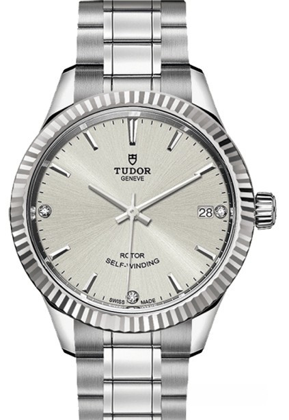 Часы Tudor Classic Style 34 выпущены в корпусе из нержавеющей стали размером 34 мм и водонепроницаемостью 100 м. Внутри корпуса установлен автоматический Калибр 2824 с запасом хода 38 часов. На серебристом циферблате с 3-мя белыми бриллиантами отображаются часы, минуты, секунды, дата. Часы комплектуются браслетом из нержавеющей стали.