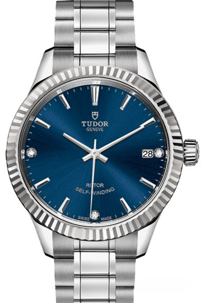 Часы Tudor Classic Style 34 выпущены в корпусе из нержавеющей стали размером 34 мм и водонепроницаемостью 100 м. Внутри корпуса установлен автоматический Калибр 2824 с запасом хода 38 часов. На синем циферблате с 3-мя белыми бриллиантами отображаются часы, минуты, секунды, дата. Часы комплектуются браслетом из нержавеющей стали.