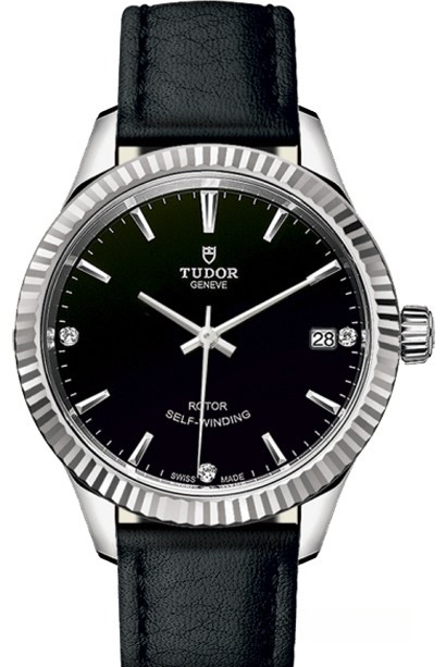 Часы Tudor Classic Style 34 выпущены в корпусе из нержавеющей стали размером 34 мм и водонепроницаемостью 100 м. Внутри корпуса установлен автоматический Калибр 2824 с запасом хода 38 часов. На черном циферблате с 3-мя белыми бриллиантами отображаются часы, минуты, секунды, дата. Часы комплектуются кожаным ремешком с вставкой из нержавеющей стали.