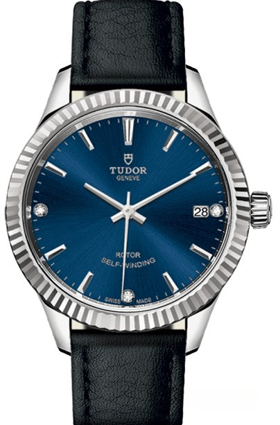 Часы Tudor Classic Style 34 выпущены в корпусе из нержавеющей стали размером 34 мм и водонепроницаемостью 100 м. Внутри корпуса установлен автоматический Калибр 2824 с запасом хода 38 часов. На синем циферблате с 3-мя белыми бриллиантами отображаются часы, минуты, секунды, дата. Часы комплектуются кожаным ремешком с вставкой из нержавеющей стали.