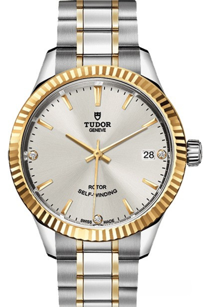 Часы Tudor Classic Style 34 выпущены в корпусе из нержавеющей стали и желтого золота 18к, размером 34 мм и водонепроницаемостью 100 м. Внутри корпуса установлен автоматический Калибр 2824 с запасом хода 38 часов. На серебристом циферблате с 3-мя белыми бриллиантами отображаются часы, минуты, секунды, дата. Часы комплектуются браслетом из нержавеющей стали и желтого золота 18к.