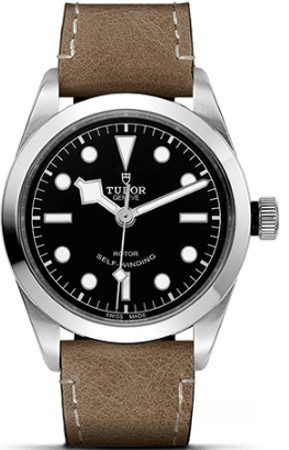 Часы Tudor Black Bay 36 выпущены в корпусе из нержавеющей стали, размером 36 мм и водонепроницаемостью 150 м. Внутри корпуса установлен автоматический Калибр 2824 с запасом хода 38 часов. На черном циферблате отображаются часы, минуты, секунды. Часы комплектуются кожаным ремешком с вставкой из нержавеющей стали.