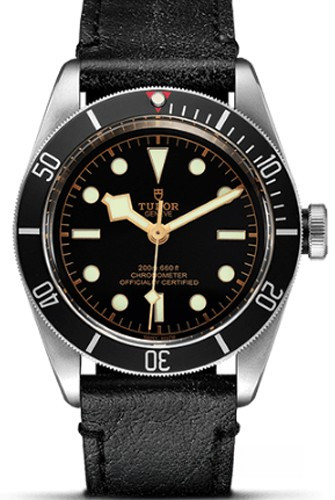 Часы Tudor Black Bay выпущены в корпусе из нержавеющей стали, размером 41 мм и водонепроницаемостью 200 м. Внутри корпуса установлен автоматический Калибр MT5602 с запасом хода 70 часов. На черном циферблате отображаются часы, минуты, секунды. Часы комплектуются кожаным ремешком с вставкой из нержавеющей стали. Безель вращается в одну сторону, часы являются сертифицированным хронометром.