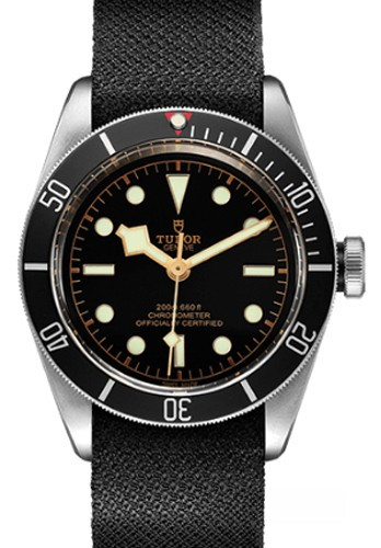 Часы Tudor Black Bay выпущены в корпусе из нержавеющей стали, размером 41 мм и водонепроницаемостью 200 м. Внутри корпуса установлен автоматический Калибр MT5602 с запасом хода 70 часов. На черном циферблате отображаются часы, минуты, секунды. Часы комплектуются текстильным ремешком с вставкой из нержавеющей стали. Безель вращается в одну сторону, часы являются сертифицированным хронометром.