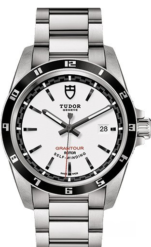 Часы Tudor Grantour выпущены в корпусе из нержавеющей стали, размером 42 мм и водонепроницаемостью 150 м. Внутри корпуса установлен автоматический Калибр 2824 с запасом хода 38 часов. На белом циферблате отображаются часы, минуты, секунды, дата. Часы комплектуются браслетом из нержавеющей стали.