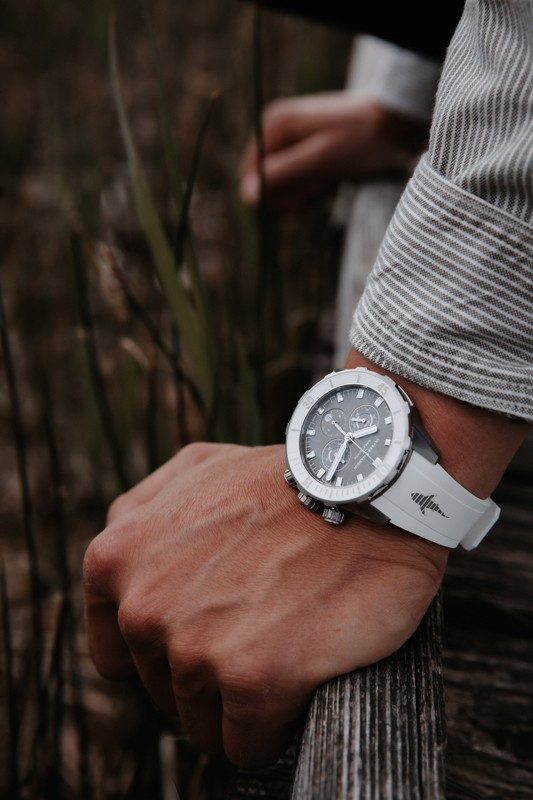 Часы Ulysse Nardin Diver Chronograph Great White 44mm Limited Edition представлены в корпусе из титана размером 44 мм водонепроницаемостью 300 метров. Внутри корпуса установлен автоматический механизм, Калибр UN-150, обладающий запасом хода 48 часов. На сером циферблате отображаются часы, минуты, секунды, дата, накопители хронографа. Часы комплектуются каучуковым ремешком с титановой застежкой. Серия ограничена - 300 шт.
